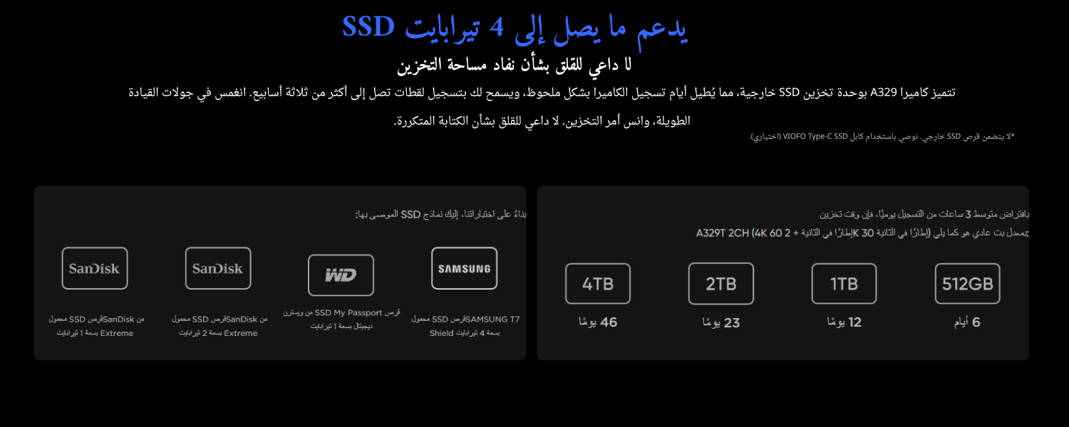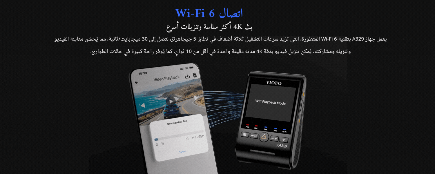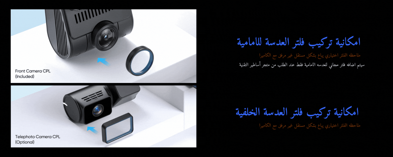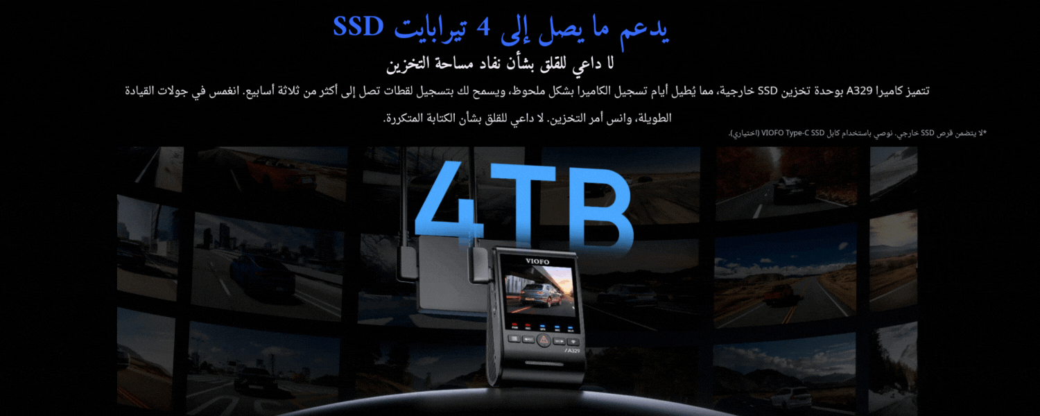 داش كام كاميراتين أمامية وأمامية تيلفوتوغرافي ×4 مع أمكانية أضافة كاميرا ثالثة ماركة Viofo موديل A329T 2CH