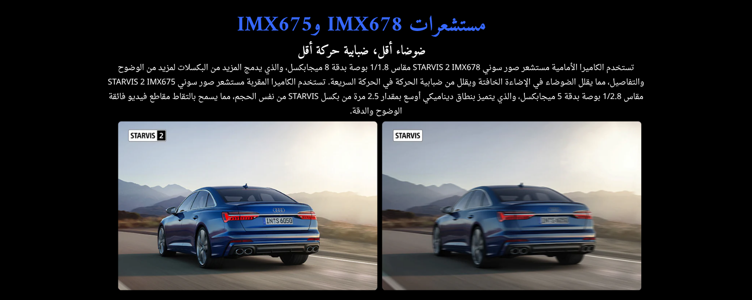 دقة الكاميرا الأمامية : 4K (UHD) 3840P x 2160P تقنية الرؤية الليلية الجيل الثاني STARVIS 2